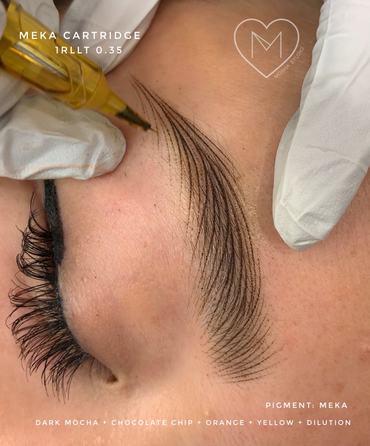 Mosha's Nano Hair Stroke work, using the MEKA needle cartridges and Organic Pigment products.